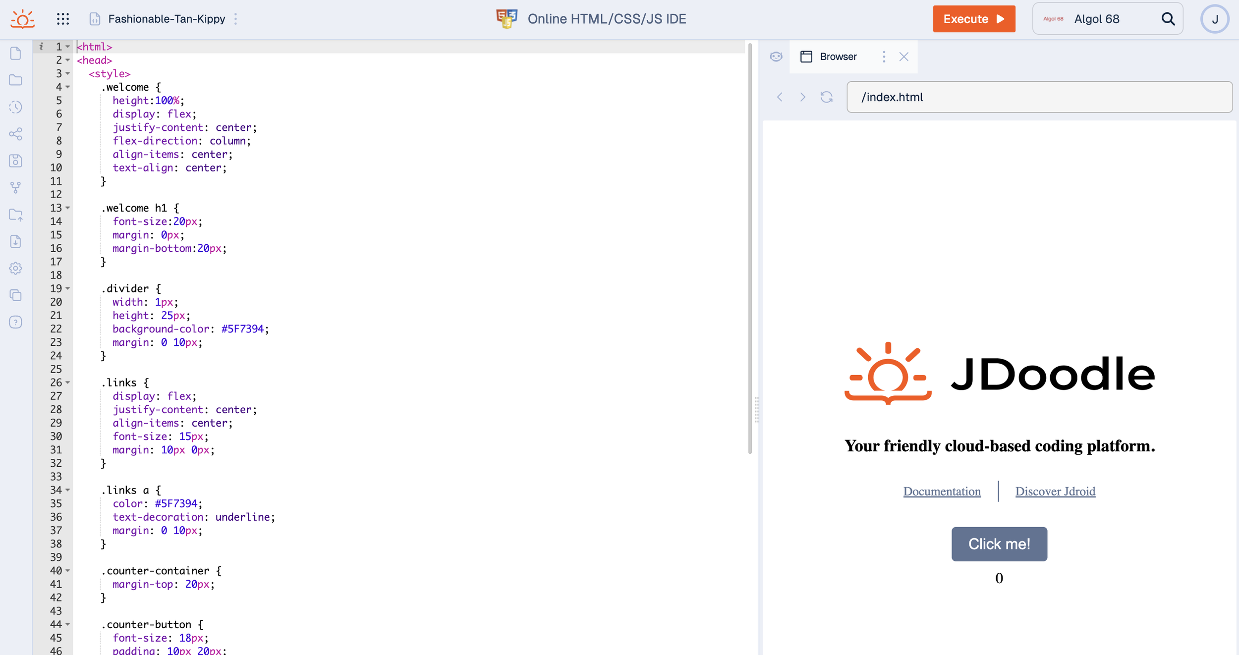 Editor: https://www.jdoodle.com/html-css-javascript-online-editor